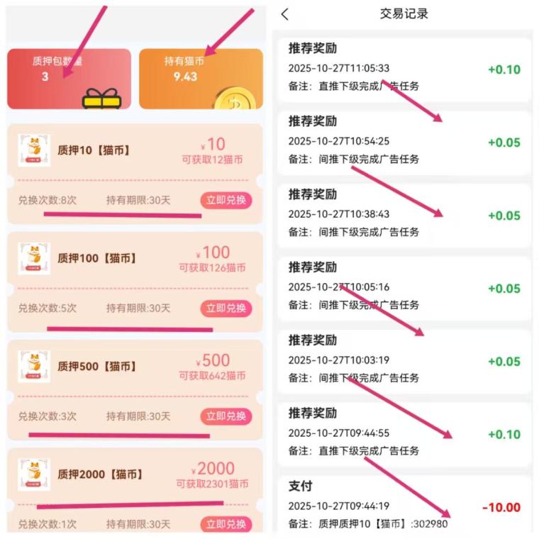 正文 招财猫副业,纯零撸强烈推荐,每天1米,推广最高20代收益,轻松上手赚收益 金豆队长 V评论者 /昨天 /0 评论 /505 阅读 1101 文章最后更新时间2025年11月01日,若文章内容或图片失效,请留言反馈! 招财猫副业,纯零撸强烈推荐,每天1米,推广最高20代收益,轻松上手赚收益。这是一款主打零门槛、稳收益的副业平台,用户无需投入即可参与,获得招财币,实现轻松收益。通知:质押与收益现在普通会员需要质押10猫币成为有效用户才可进行转赠。质押10猫币每天芬虹0.4猫币,观看7条广告每天1猫币=1元。直推好友观看广告收益10%,间推用户5%。推广收益高团队体系共20代下级收益,10代必出黑马,纯零撸,大家干就完了!游戏介绍:绿色大逃杀多样玩法,刚出码,抢占先机。服务V:MangGuoMoXiong 版权声明:本文内容由互联网用户自发贡献,该文观点仅代表作者本人。本站仅提供信息存储空间服务,不拥有所有权,不承担相关法律责任。请勿盲目下载注册。如发现本站有涉嫌抄袭侵权/违法违规的内容, 请发送邮件至:1442121520@qq.com