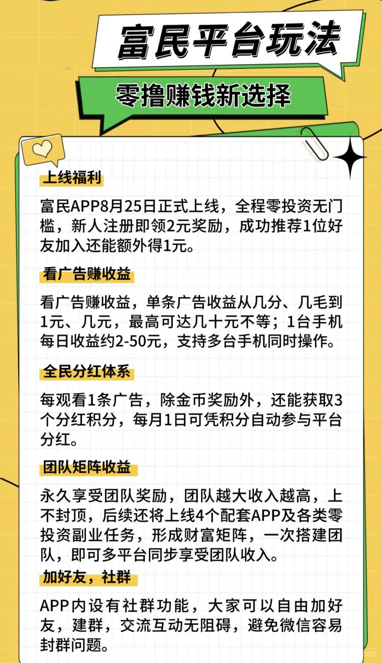 正文 富民短剧,免费观看短剧赚金币和分红积分双重收益,轻松上手日入可观 zhuzi123 V评论者 /昨天 /0 评论 /556 阅读 1114 文章最后更新时间2025年11月14日,若文章内容或图片失效,请留言反馈! 富民短剧,免费观看短剧赚金币和分红积分双重收益。新人任务奖励2元,同时还有分红积分。观看短剧,收益双重短剧免费观看,看一个视频有金币,同时获得3分红积分。分红积分每个月分红,金币积分越多,分的金币越多。 版权声明:本文内容由互联网用户自发贡献,该文观点仅代表作者本人。本站仅提供信息存储空间服务,不拥有所有权,不承担相关法律责任。请勿盲目下载注册。如发现本站有涉嫌抄袭侵权/违法违规的内容, 请发送邮件至:1442121520@qq.com