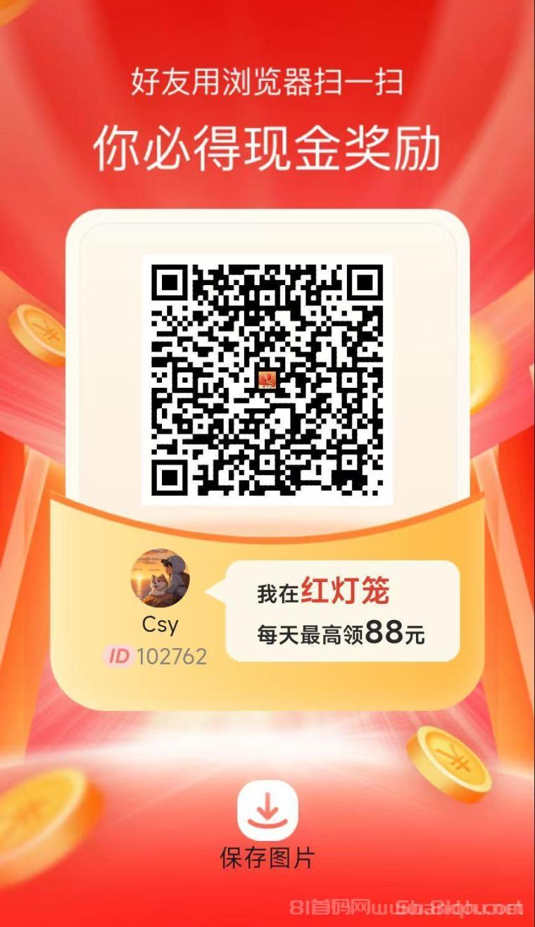 红灯笼首码:0养机1毛广告日刷20条,3代推广10%分成,1元起提秒到