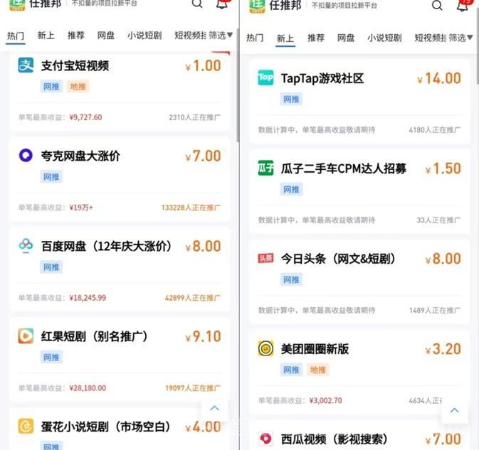任推邦也是网推及地推行业的明星产品,做app拉新的基本上都知道这个平台,而且任推邦这个平台做拉新是不扣量的。