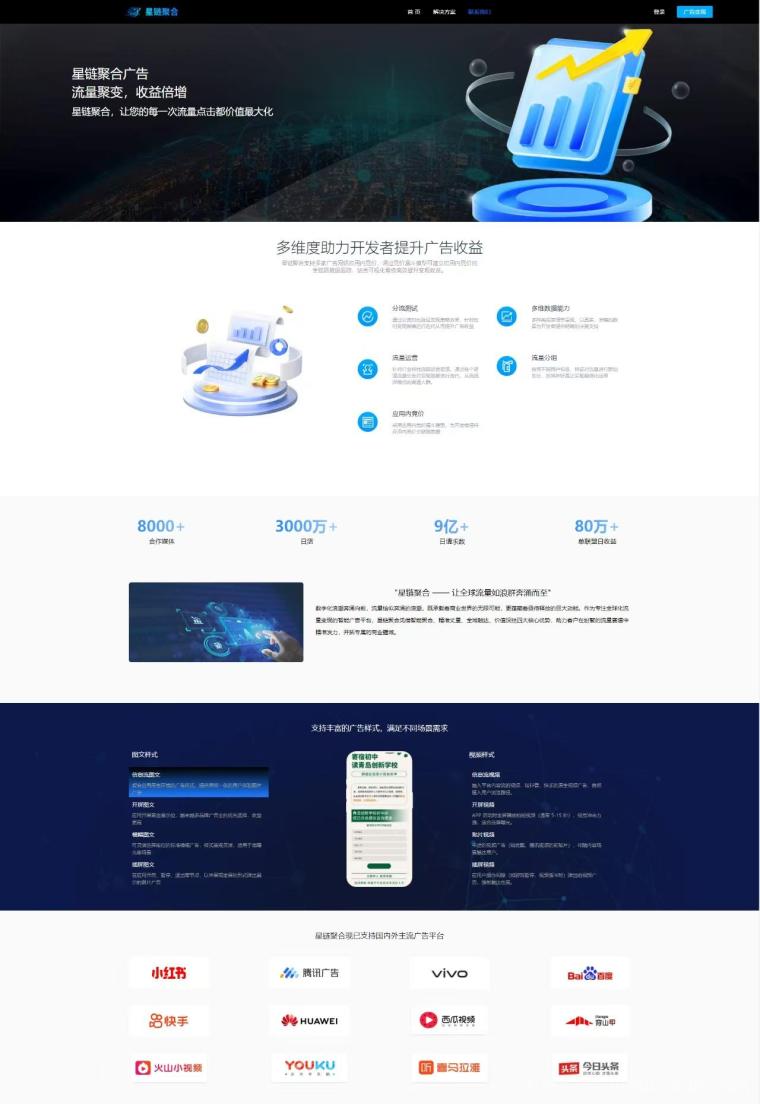 我们是星链广告聚合SDK,专注于为应用开发者提供高转化、高收益的广告变现解决方案。如果您的APP正在接入或优化广告资源,以下服务优势或许能为您带来实实在在的价值: