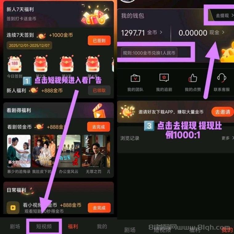 秒赚拾光首码:零撸短剧+广告双通道,1万金币=1元秒提,邀请2元日躺过百