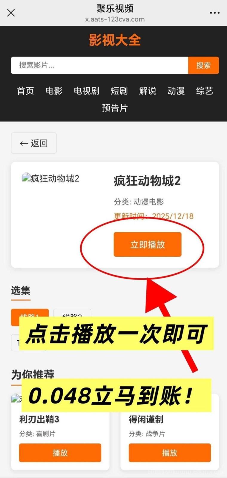 聚乐影视老牌出品,自己点或分享好友都行,一次点击0.048元,IP日计一次;100次4.8元,推广5代收益层层叠加,浏览器扫码秒注册,已测到账,结算快提现稳。