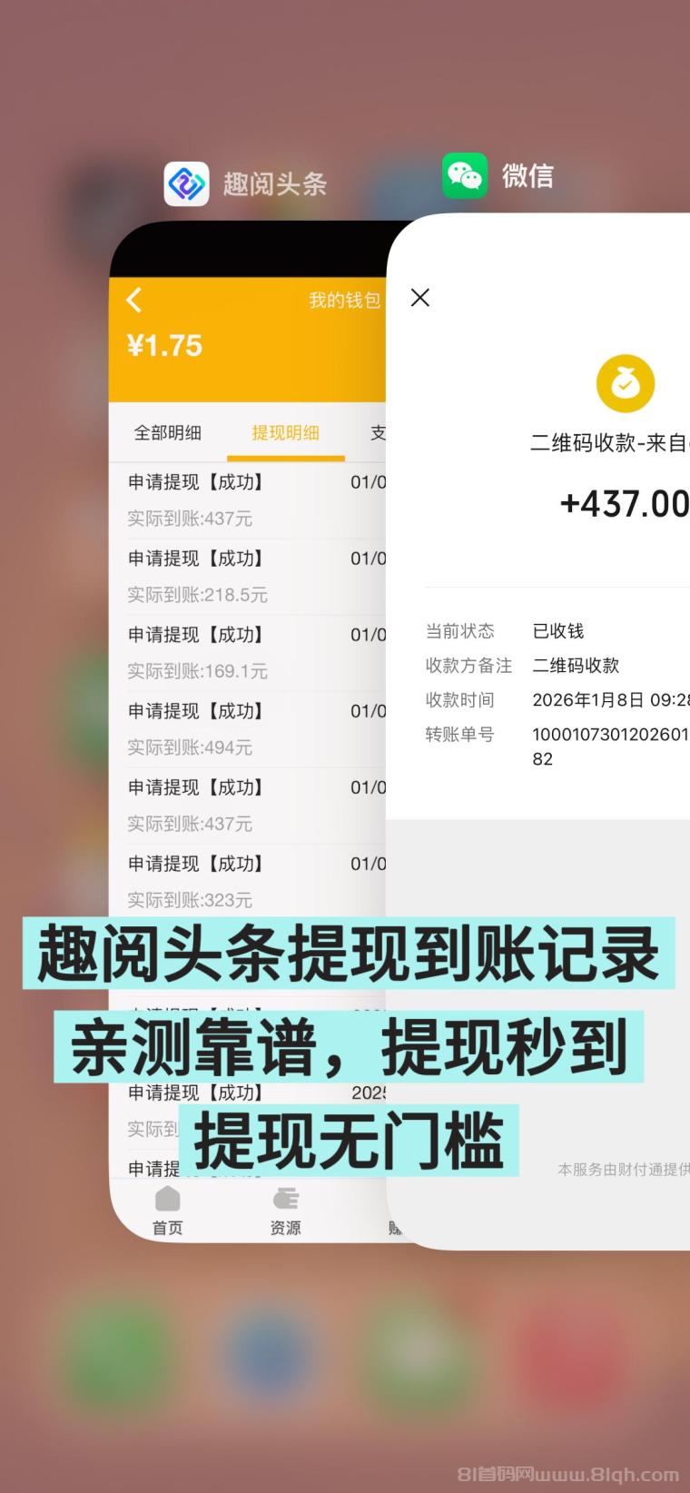 全网扶持对接,趣阅头条:每条广告2元,静态日入90元。