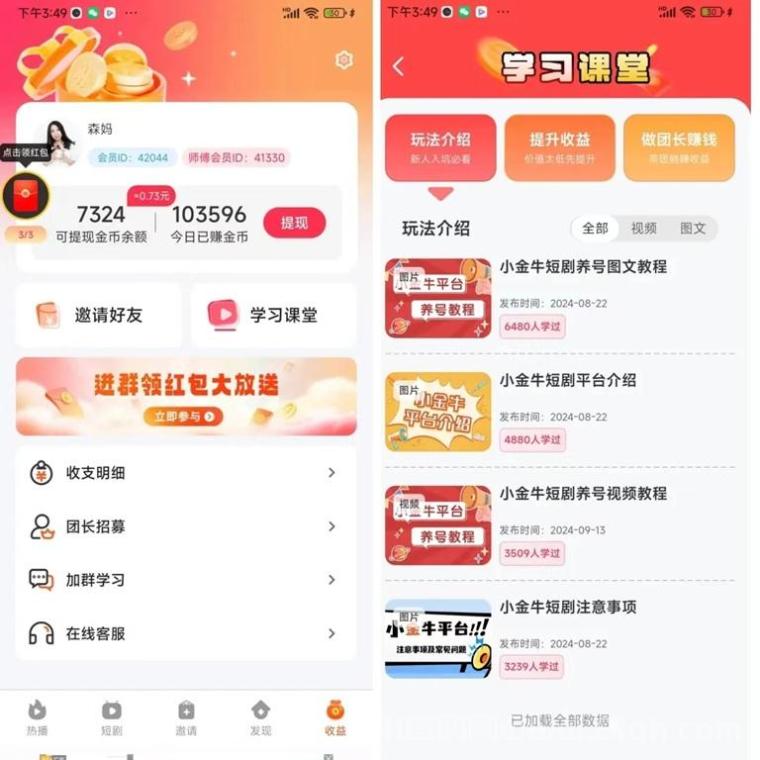 小金牛短剧这个平台不仅仅是可以看广告赚米,小金牛短剧还可以免费看短剧,在小金牛短剧上面有海量的短剧可以免费观看,不仅可以免费看短剧看广告还可以赚钱。