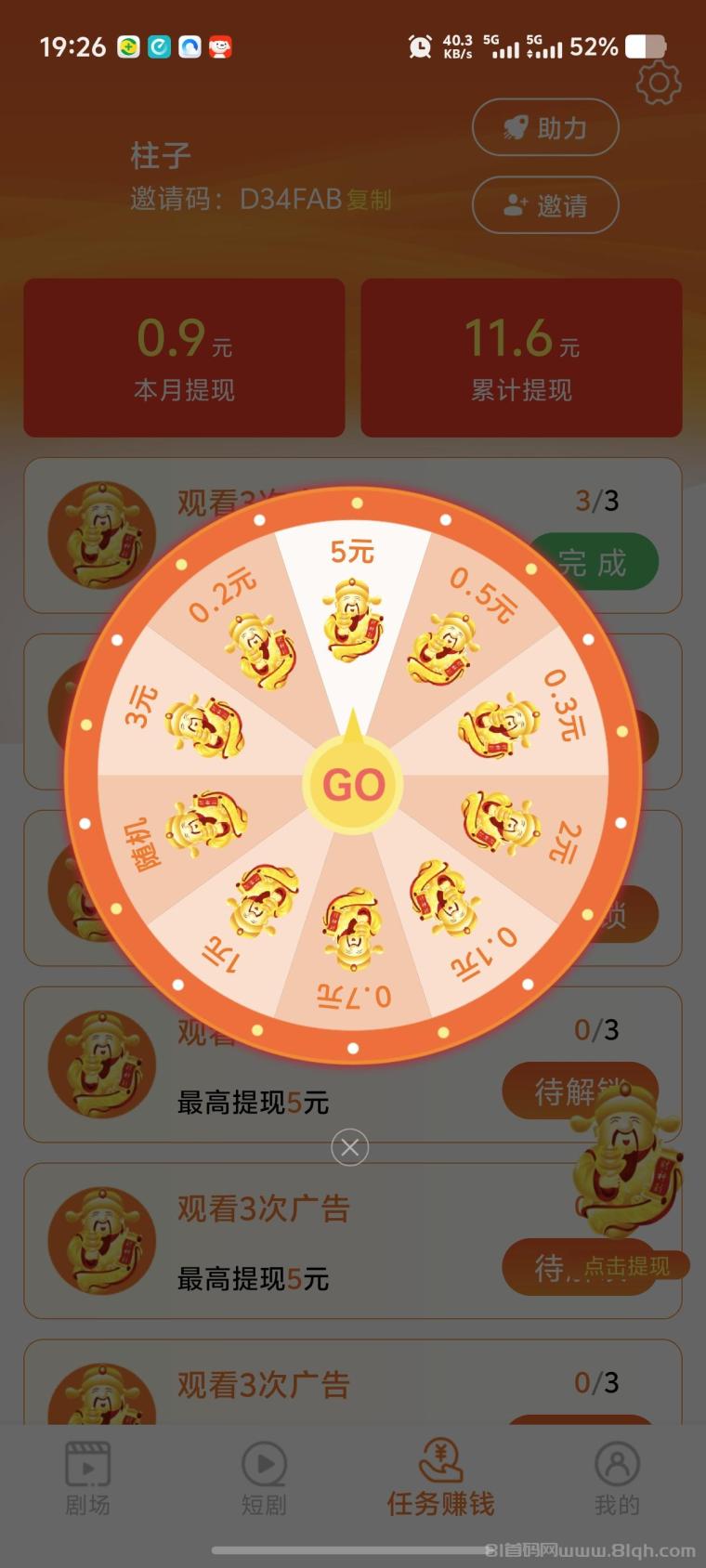 正文 闲映极速版财神分红:看短剧抽大奖0.1-5元日30轮1元顶包 zhuzi123 V评论者 /今天 /0 评论 /81 阅读 0128 文章最后更新时间2026年01月28日,若文章内容或图片失效,请留言反馈! 闲映极速版财神抽奖上线,任务每三轮抽一次财神保底0.1最高5元,日30轮,解锁短剧红包0.1-0.8元顶包1米,邀请好友拿财神分红,下级抽多少你拿多少。日30轮财神抽奖任务每三轮抽一次,保底0.1最高5元,日上限30轮,余额实时涨,早抽早到。短剧解锁红包顶包1米解锁短剧现金红包0.1-0.8元,顶包1元,刷剧同时把钱赚,零门槛日撸几十。邀请好友双份分红好友解锁短剧你拿1:1提成,他抽财神你同样得分红,团队越大越暴利,先锁粉先躺赚。 版权声明:本文内容由互联网用户自发贡献,该文观点仅代表作者本人。合作之前建议签订合同,本站仅提供信息存储空间服务,不拥有所有权,不承担相关法律责任。请勿盲目下载注册。若您不同意该提示,请关闭网页且不要在本站拓展任何合作,否则造成的任何损失由您个人承担。如发现本站有涉嫌抄袭侵权/违法违规的内容, 请发送邮件至:1442121520@qq.com