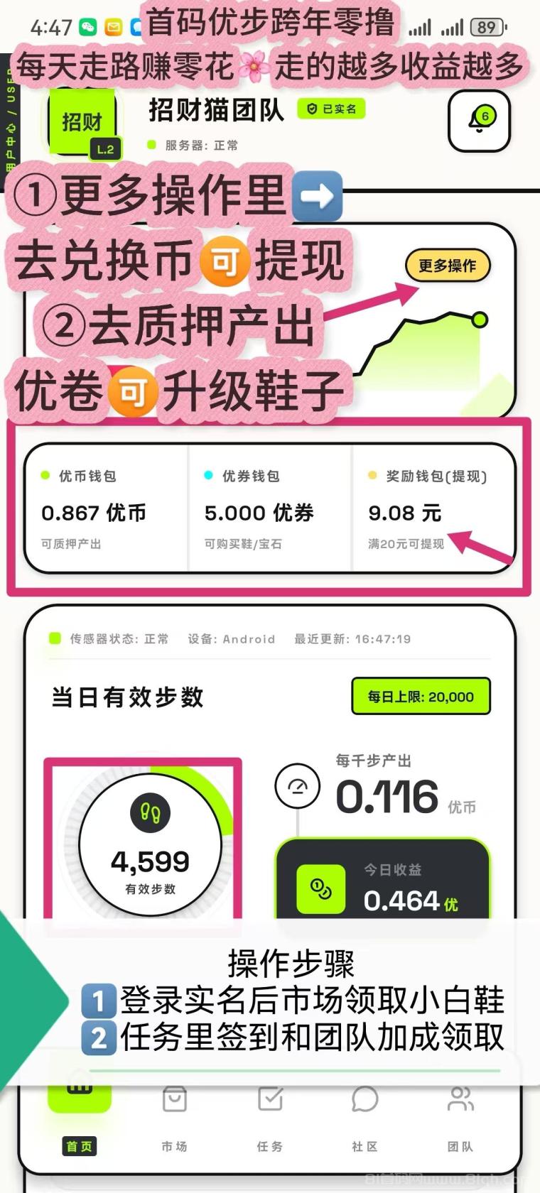 正文 优步走路零撸首码:签到7天领58元提20+三代收益秒到 金豆队长 V评论者 /今天 /0 评论 /521 阅读 0131 文章最后更新时间2026年01月31日,若文章内容或图片失效,请留言反馈! 优步APP全新概念0撸上线,连续签到7天直接领58元,满20元提现秒到;实名领小白鞋,直推50人奖1080元工资,三代收益加速,走路赚优币可换现金。签到7天58元无门槛APP内连续签到7天,58元直接到账,0撸首提20元秒到微信,后续日日可提。小白鞋任务双收益市场免费领小白鞋,每日签到+团队加成领优币,优币可兑现金,也可质押产优卷换新鞋,复利滚雪球。直推50人奖1080元+三代收益邀1人得1元+收益加成券,直推50人公司月发1080元工资,三代团队收益叠加,走路也躺赚。服务V:jindoumangguo 邀请码VYQGZ9QU 版权声明:本文内容由互联网用户自发贡献,该文观点仅代表作者本人。合作之前建议签订合同,本站仅提供信息存储空间服务,不拥有所有权,不承担相关法律责任。请勿盲目下载注册。若您不同意该提示,请关闭网页且不要在本站拓展任何合作,否则造成的任何损失由您个人承担。如发现本站有涉嫌抄袭侵权/违法违规的内容, 请发送邮件至:1442121520@qq.com