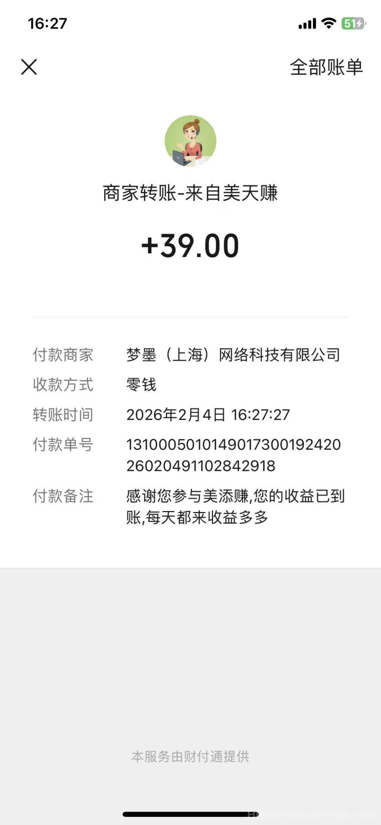 美添赚主攻微信生态里的阅读、关注、点赞三类任务。做完指定动作拿积分,折算下来每天稳定3到5块钱。平台允许多个账号的积分归集到一个主账户提现,不用每个号单独凑门槛,管理起来省事。