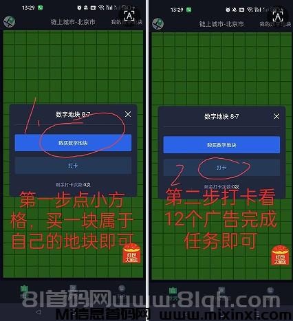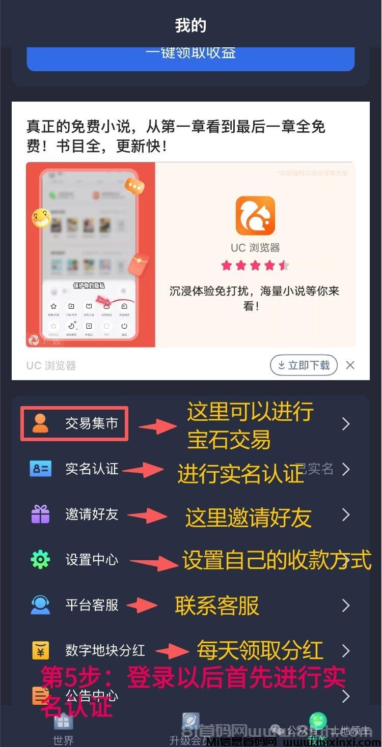链上城市是3月7号刚上线的应用,背后有元宇宙产业背景,公司总部设在郑州。这个平台主打零撸玩法,每天花几分钟打卡看广告就能赚钻石,钻石能换宝石,宝石可以直接在交易区卖掉换钱。