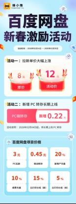 百度网盘新春激励活动持续升温,12元移动端拉新单价的红利,让不少人争相入场。今天,不玩虚的,把本次激励活动的所有政策,拆解得明明白白,干货拉满,新手看完直接上手,避免走弯路、白忙活,稳稳接住这波增收红利。