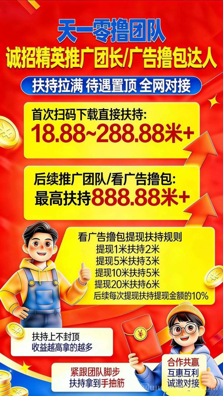直推10%佣金提成,间推5%佣金提成。团队累积达到500人升级服务商,享受更高佣金奖励提成,适合有推广资源的团队长重点布局。