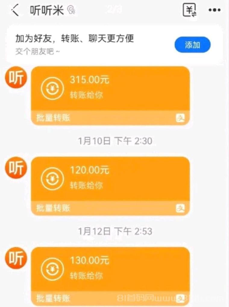 下方图片有邀请二维码,用浏览器扫码下载APP领取挂机脚本即可开始挂机听音乐赚钱。现在阶段任务量充足,单价给得稳,适合有闲置设备的人长期持有。后期平台可能会调整单价或者增加任务难度,早进场早锁定高收益。