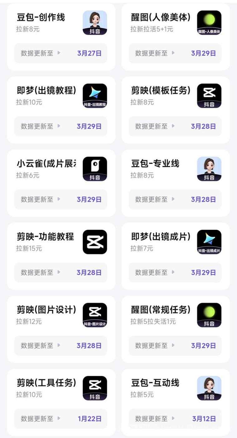 神图君上线的拉新项目也是非常多的,目前豆包即梦醒图剪映小云雀剪小映等等,还有很多国际版的应用拉新,在神图君都已经上线,变现非常简单,小白也能快速上手。