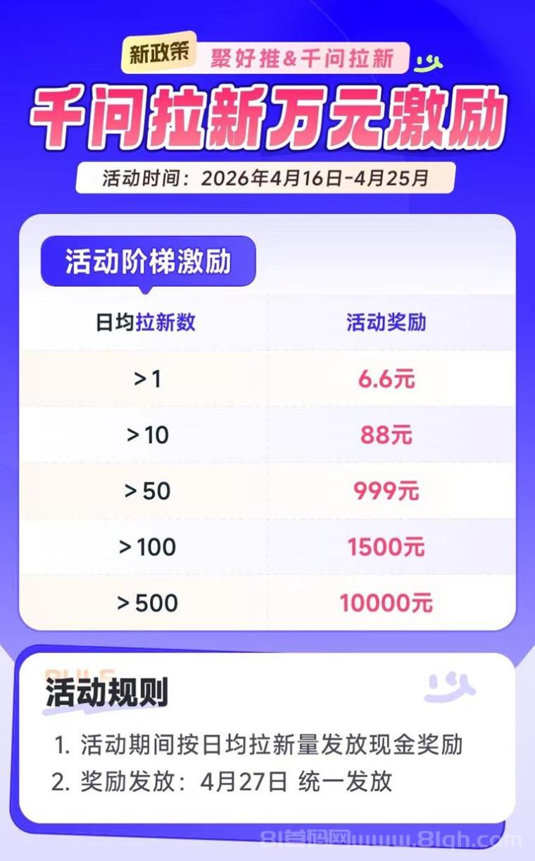 聚好推千问拉新一级接单渠道,单价高结算快,奖励活动多,聚好推千问拉新狂飙!开启财富增长新征程,在当下竞争激烈的互联网推广领域。