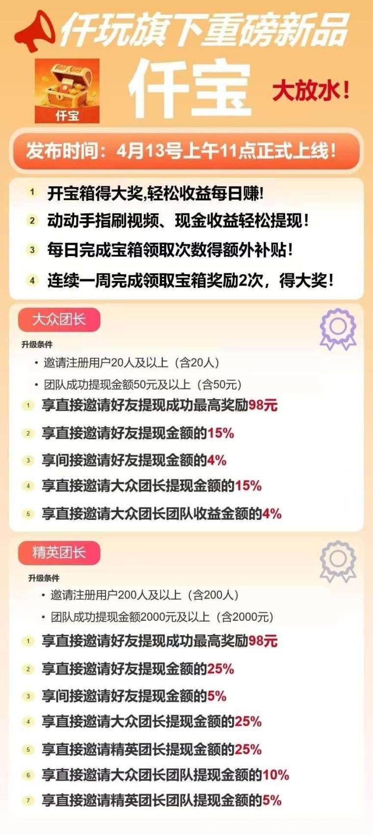 正文 首码仟宝:开启零撸广告赚钱新纪元,高额扶持等你来拿! 天一项目对接 V评论者 /今天 /0 评论 /528 阅读 0416 文章最后更新时间2026年04月16日,若文章内容或图片失效,请留言反馈! 首码仟宝,首次预付高额扶持,零撸广告赚,不养机保底收益高,仟贝大公司出品有保障,单机每天轻松20-50+,免费提供不养机玩法教程,扶持拉满,待遇置顶!简玩模式,点首页那个探索宝箱看六个广保底最低2-6米,六个广告一轮可无限制撸,保底20000金币(2米)/满包60000(6米)四大广告都吃、新台子正在放水主应用搭配子应用一起薅支持wx或支保提现对接团长报ID可开开团浏览器扫码下载推广团队扶持 首次预付88.88米~888.88米+ 后续推广收益五五分成自玩金币扶持 首次预付88.88米~188.88米+后续每次提现10米补贴1.66米具体扶持金额以询问我后为准 版权声明:本文内容由互联网用户自发贡献,该文观点仅代表作者本人。合作之前建议签订合同,本站仅提供信息存储空间服务,不拥有所有权,不承担相关法律责任。请勿盲目下载注册。若您不同意该提示,请关闭网页且不要在本站拓展任何合作,否则造成的任何损失由您个人承担。如发现本站有涉嫌抄袭侵权/违法违规的内容, 请发送邮件至:1442121520@qq.com