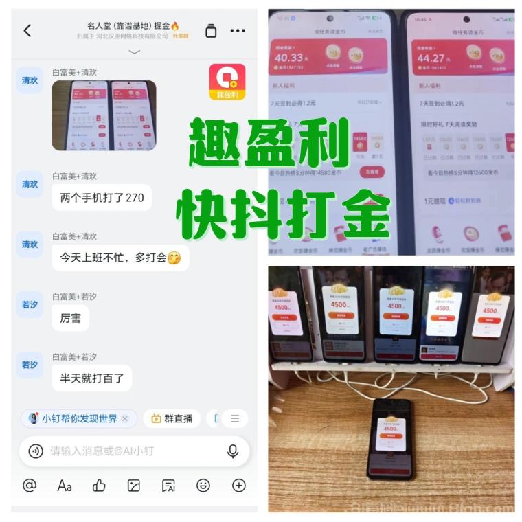 ①快抖打金:长期稳定,单机一天20-50,10台手机200-500,可批量矩阵。
