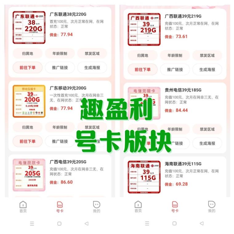 ③号卡板块:自用和推广都有佣金,每张卡平均佣金60+,有团队长期管道。
