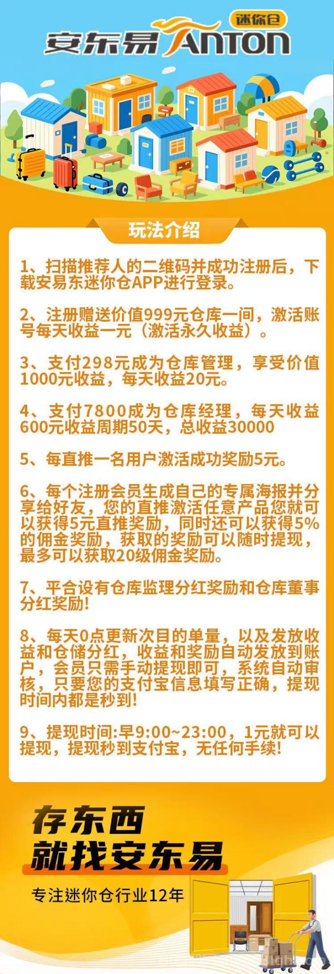 最新养成类首码项目【安易东迷你仓】仓位养成收益,无广告,无脑收益,注册送福利888体验卡,激活每天3元,收益120天(简单易懂,释放双手)。