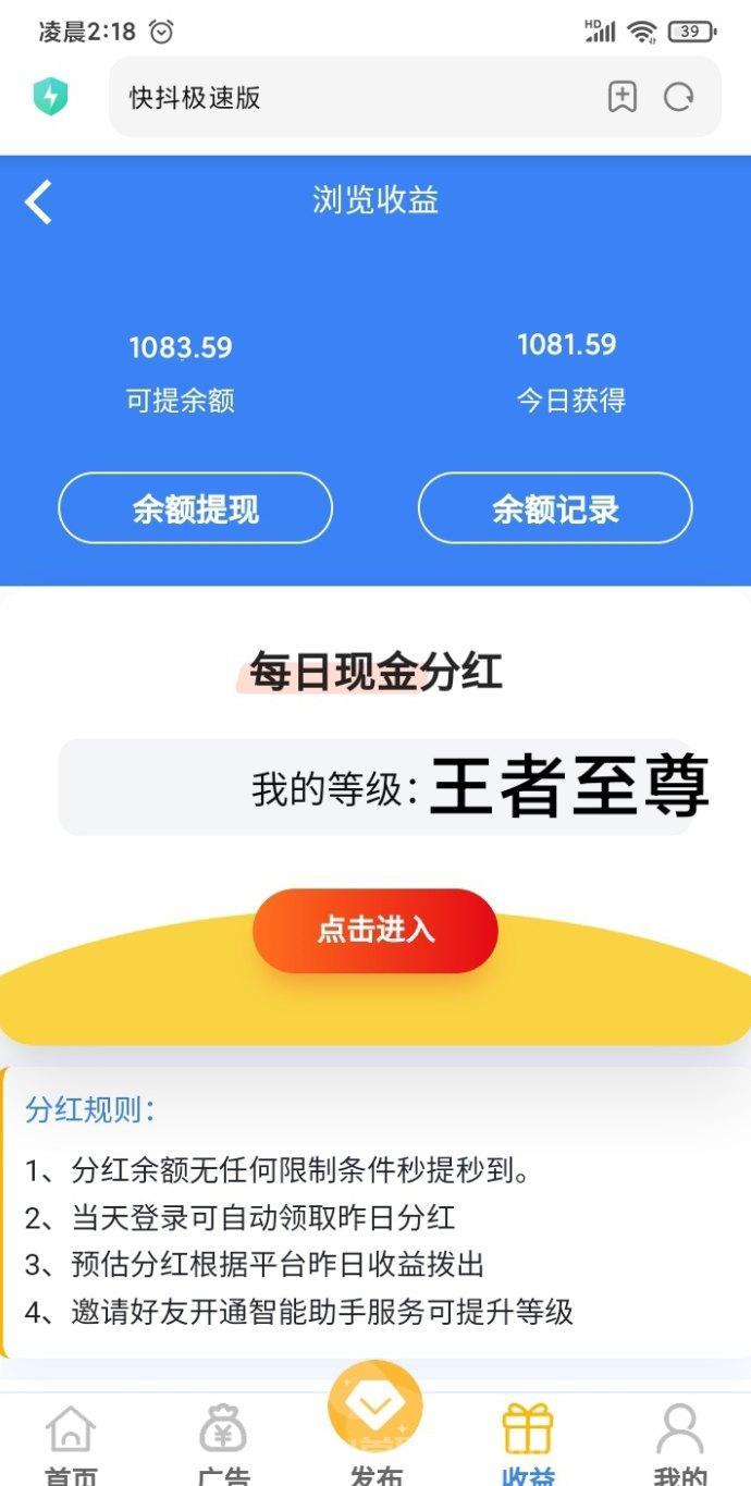 快抖科技扶持版首码,开挂机直接返20,直接提取,操作简便收益稳。快科技极速版是快抖与抖音、快手深度合作的全新赚米平台,结合AI自动挂机、看广告赚米、每日星级分红和拉新奖励等多重玩法,收益稳健,提取秒速到账至支付宝,会员开挂机直接返20直接发放到账户,可直接提取,请认准扶持首码。