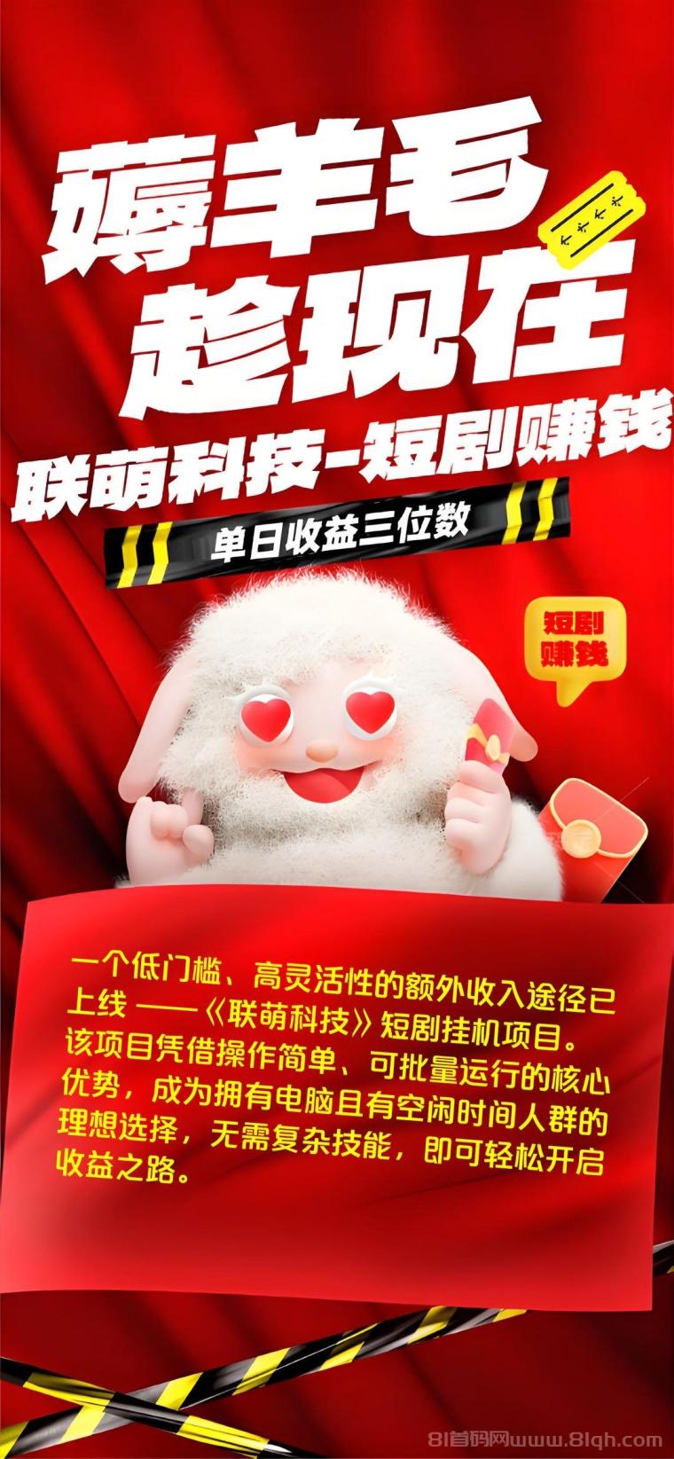 短剧全自动挂机观看,日入可观。联萌科技短剧项目,通过云端服务器软件实现自动观看短剧获得收益,全新玩法,目前红利期,想挣米的来。