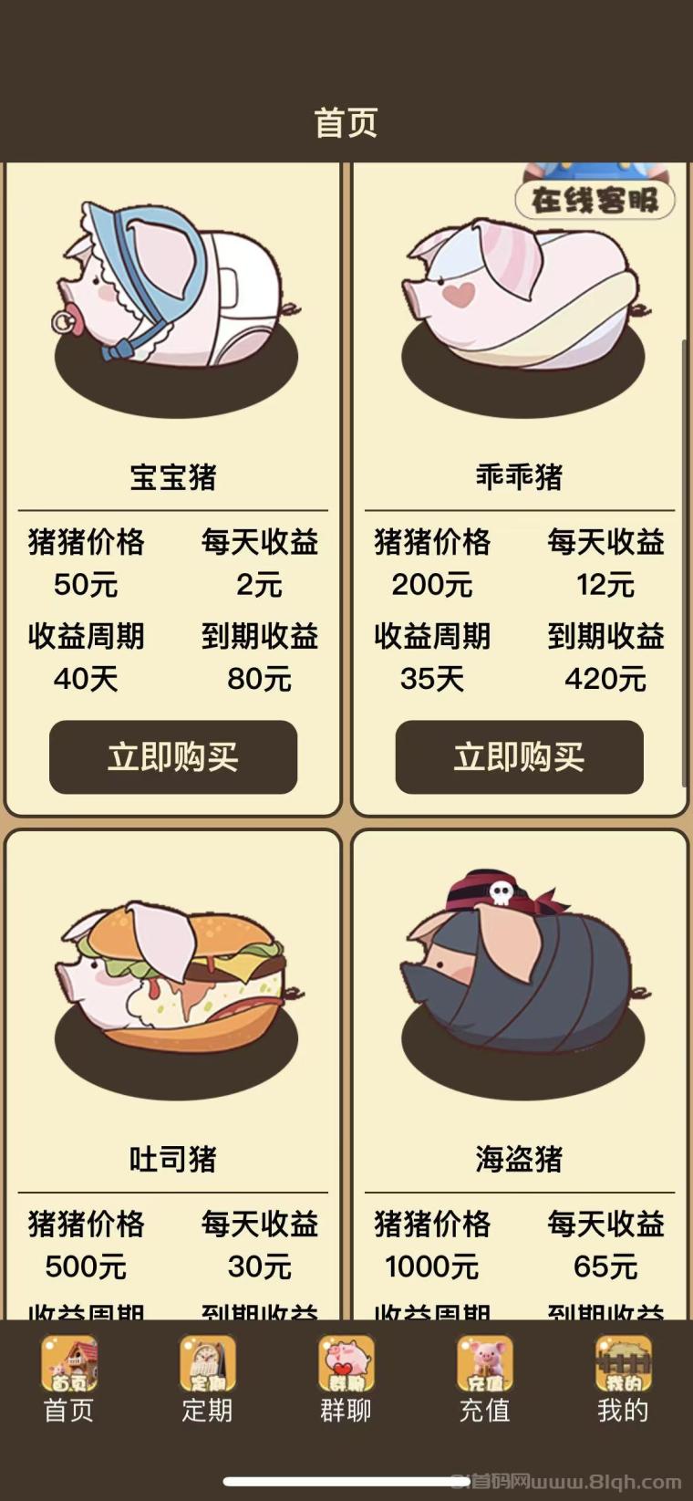 养猪大亨零撸,注册奖励一只猪,保底收益高。注册奖励价值666元普通猪崽一只,激活账号每天收益1元(激活永久收益)。