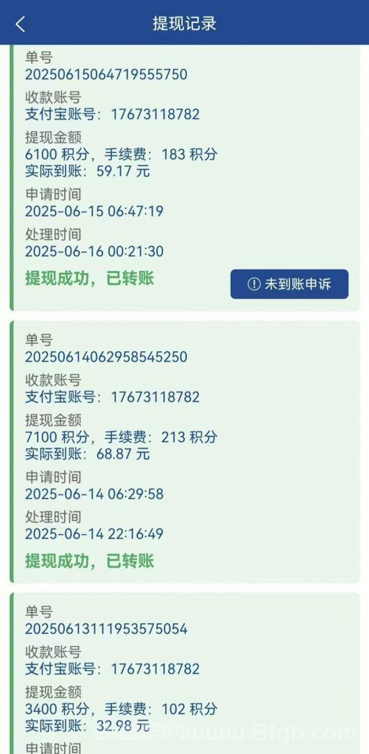 积分100=1元,支付宝秒提,当天到账。一个号一天一次,70块到手;号多就批量,收益直线上升。