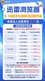 首先是基础佣金稳定拿。用户通过下载注册迅雷浏览器后搜索推广者口令,推广者就能拿到最高10元/单的佣金,官方结算透明,只要有新用户,就有稳定收益。