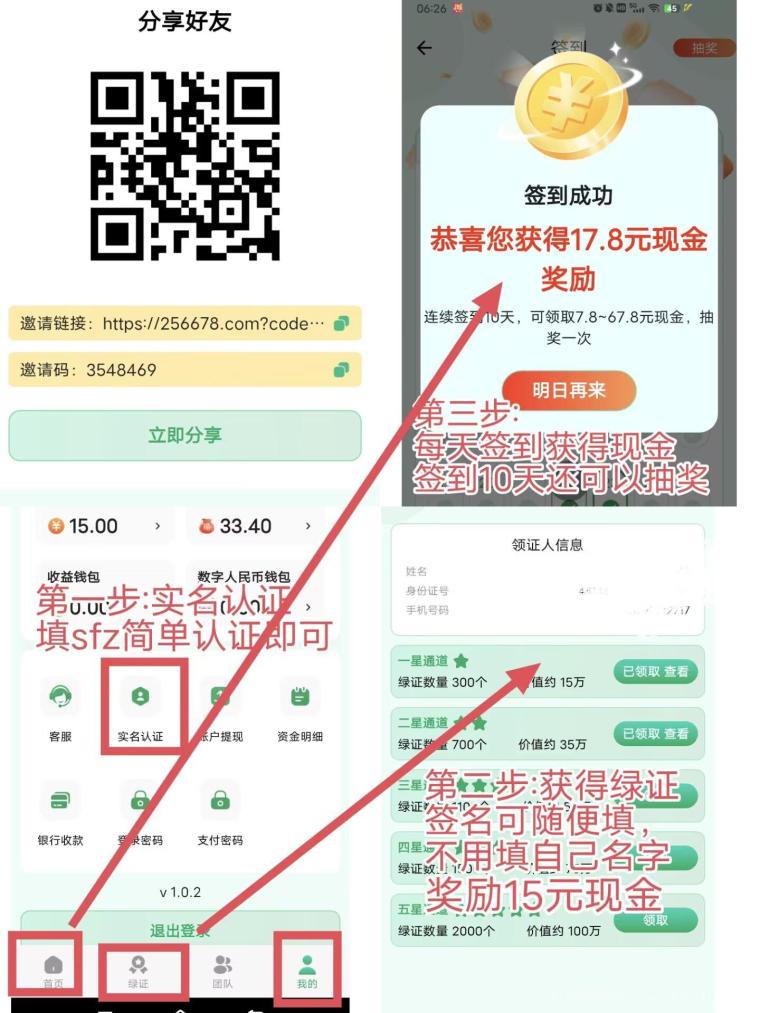 正文 绿色能源注册实名奖励15元,每天签到7+,轻松赚取额外收益 xwp520 V评论者 /前天 /0 评论 /647 阅读 1023 文章最后更新时间2025年10月23日,若文章内容或图片失效,请留言反馈! 绿色能源,注册实名奖励15元,每天签到可获7~68元奖励,连续签到10天还能抽奖。注册实名,轻松领15元奖励注册登录后完成实名认证(简单填写身份证信息),即可领取绿证并获得15元奖励,操作简单快捷。每日签到,收益加倍每天签到可获得7~68元奖励,连续签到10天还有机会抽奖,收益持续增长,轻松积累财富。邀请码:3548469 版权声明:本文内容由互联网用户自发贡献,该文观点仅代表作者本人。本站仅提供信息存储空间服务,不拥有所有权,不承担相关法律责任。请勿盲目下载注册。如发现本站有涉嫌抄袭侵权/违法违规的内容, 请发送邮件至:1442121520@qq.com