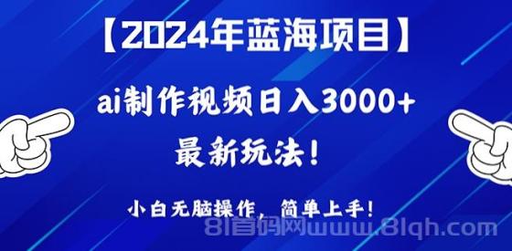 2024年蓝海项目,通过ai制作视频日入3000+,小白无脑操作,简单上手!