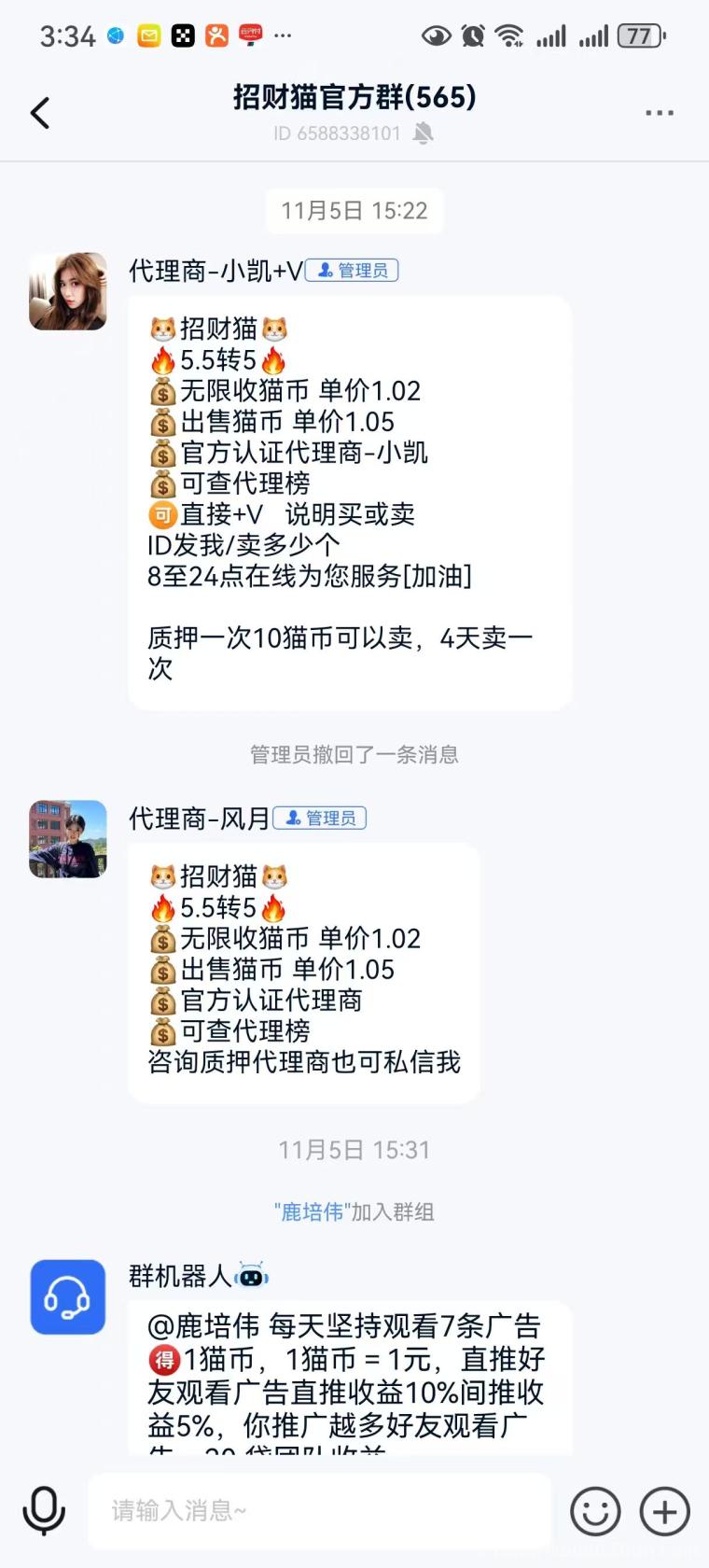 正文 招财猫,零门槛稳收益副业平台,轻松赚取收益,收益规则简单明了 魔熊 V评论者 /昨天 /0 评论 /488 阅读 1105 文章最后更新时间2025年11月06日,若文章内容或图片失效,请留言反馈! 招财猫是一款零门槛、稳收益的副业平台,用户无需投入即可参与,获得招财币,轻松赚取收益。收益规则,简单明了通知:1猫金币=1元。普通会员质押10猫币成为有效用户,可进行转赠。质押10猫币每天分红0.4猫币,观看7条广告每天获得1猫币=1元。直推好友观看广告收益10%,间推用户5%。推广收益,团队分红推广团队体系共20代下级收益,10代必出黑马,纯零撸,收益倍增。质押收益,稳定可观质押10个猫币,每天产出1.4个猫币,4天可出给群里商人一次,收益稳定且可观。低门槛高回报,副业新风口招财猫凭借低门槛,正在成为人人可做的副业新风口。抓住时机,早加入,早受益。 版权声明:本文内容由互联网用户自发贡献,该文观点仅代表作者本人。本站仅提供信息存储空间服务,不拥有所有权,不承担相关法律责任。请勿盲目下载注册。如发现本站有涉嫌抄袭侵权/违法违规的内容, 请发送邮件至:1442121520@qq.com