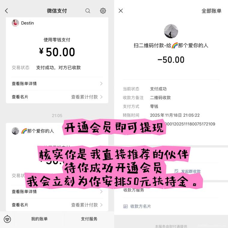 注册完成后,你可以添加我的联系方式,或者在App内私聊我。只要核实你是我直接推荐的伙伴,待你成功开通会员,我会立刻为你安排50元扶持金。