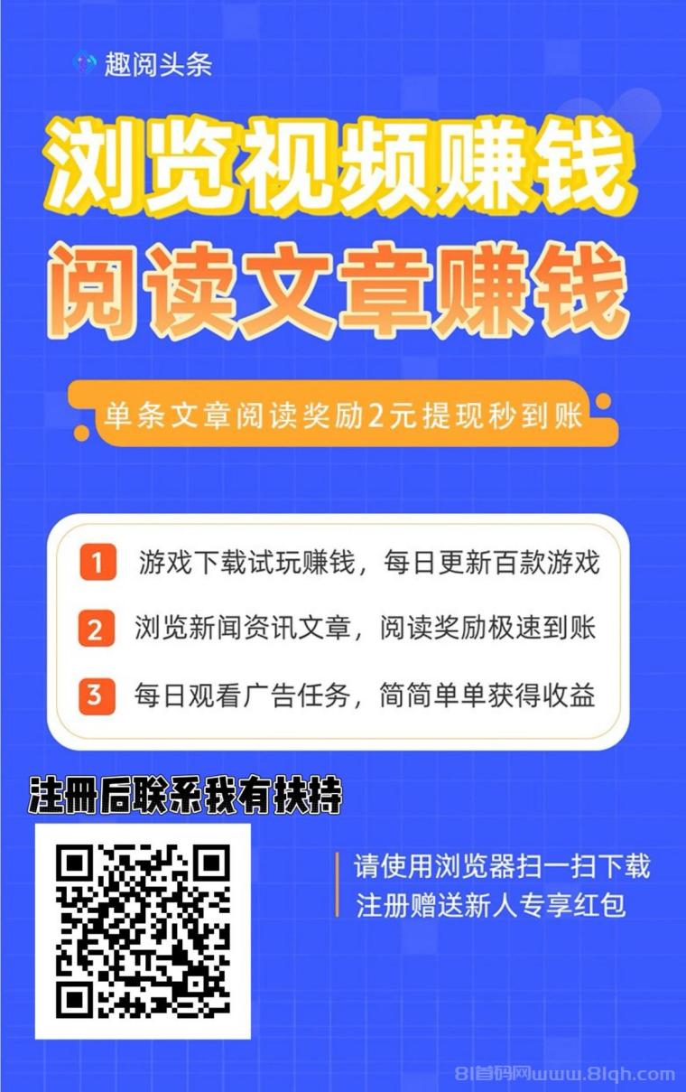 全网扶持对接,趣阅头条:每条广告2元,静态日入90元。