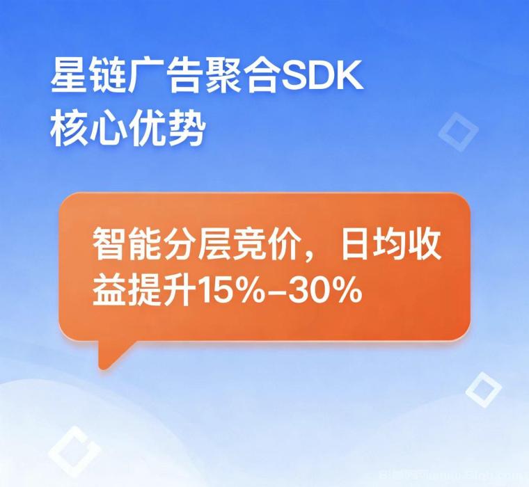 我们是星链广告聚合SDK,专注于为应用开发者提供高转化、高收益的广告变现解决方案。如果您的APP正在接入或优化广告资源,以下服务优势或许能为您带来实实在在的价值: