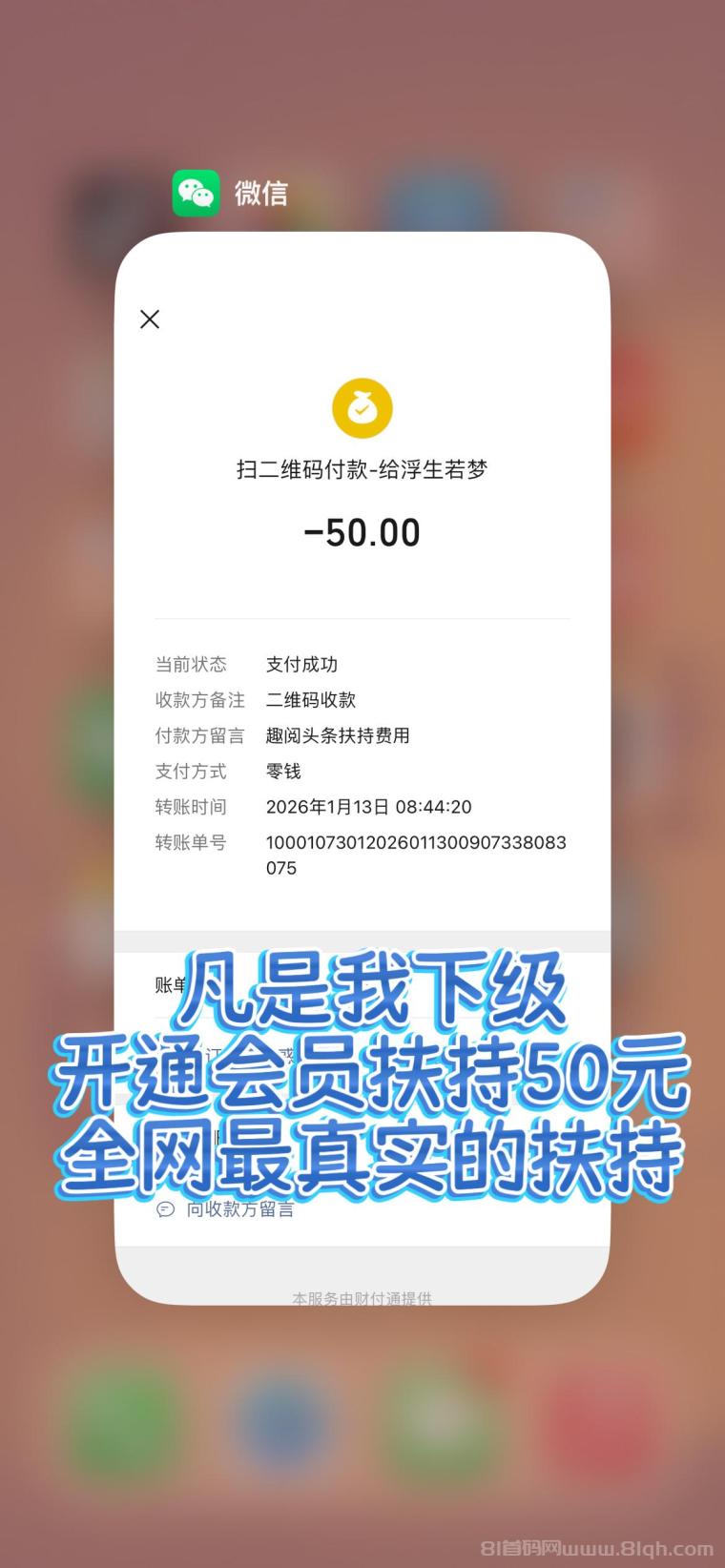 注册完成后,你可以添加我的联系方式,或者在App内私聊我。只要核实你是我直接推荐的伙伴,只要是我的下级,开通后截图付款记录+你的趣阅ID+收款码发给我,立刻返50元扶持金!名额有限,满额立刻停!