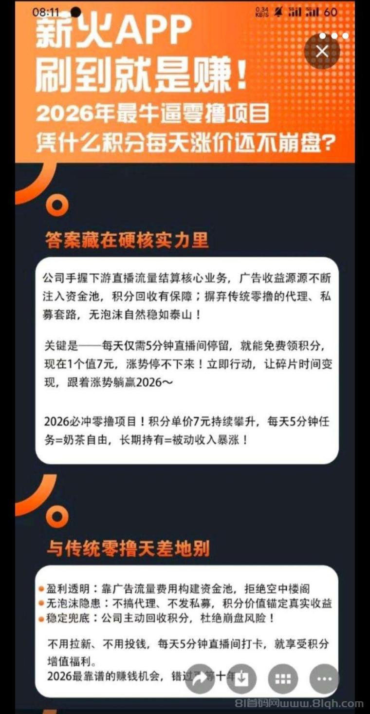 广告固定0.2元一条,十分钟刷完,老手机也能挂,积分秒到余额,不卡审不压款。