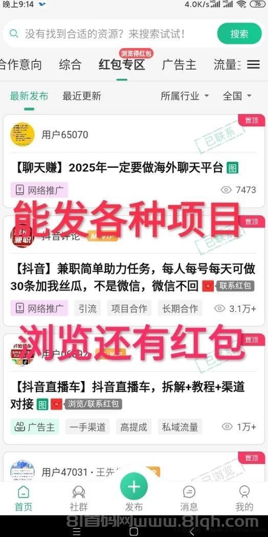正文 信商圈推广渠道首码:百万流量池免费发布长期放大收溢 wxj V评论者 /今天 /0 评论 /428 阅读 0119 文章最后更新时间2026年01月19日,若文章内容或图片失效,请留言反馈! 信商圈不是项目,是永久流量池。免费发布推广信息,百万用户实时浏览,一条好内容可拉几十精准粉,项目换渠道不换,流量持续复利。免费发布零成本获客注册即可发项目、招代理、找资源,零费用曝光,浏览还能领奖励,边逛边赚,推广成本直接归零。精准推流直击目标群平台算法推送给需求人群,一条信息可触达上百精准用户,转化率翻倍,适合推流、招商、团队扩张。适合流量焦虑的老板项目停滞、缺流量、没团队,来信商圈发一条,当天进人,长期沉淀渠道,先发布先吃肉。 版权声明:本文内容由互联网用户自发贡献,该文观点仅代表作者本人。合作之前建议签订合同,本站仅提供信息存储空间服务,不拥有所有权,不承担相关法律责任。请勿盲目下载注册。若您不同意该提示,请关闭网页且不要在本站拓展任何合作,否则造成的任何损失由您个人承担。如发现本站有涉嫌抄袭侵权/违法违规的内容, 请发送邮件至:1442121520@qq.com