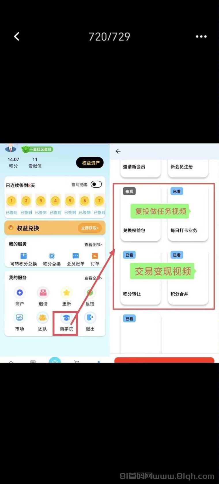 国商平台无广告自带交易,1积分=1.5元,免实名,右上角每天签到领1积分,满10积分复投任务包,看完1个短剧释放收益,积分换可转积分→市场卖出→发收款码→收钱放行,全程0撸秒变现。