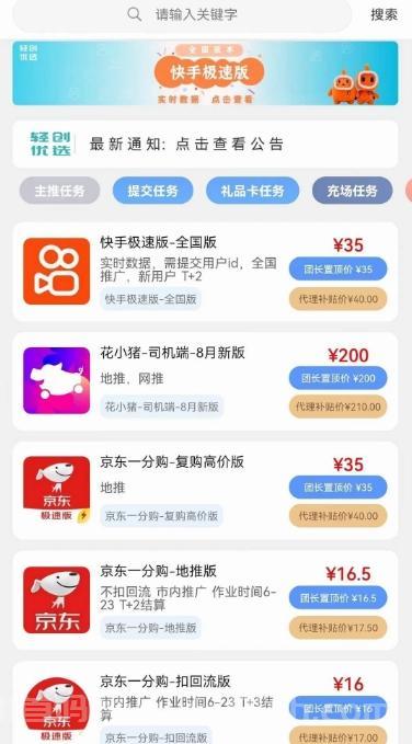 【项目介绍】 轻创优选由爆推联盟旗下的安徽九吞吴互联网科技有限公司荣誉出品,不仅聚合了企业级的CPA业务分发平台,而且还融合了生活中的衣、食、住、行特惠项目,提供了海量的优质产品。这是一个全方位教你如何赚钱、帮助你节省开支、为你精选商品的生活服务平台。