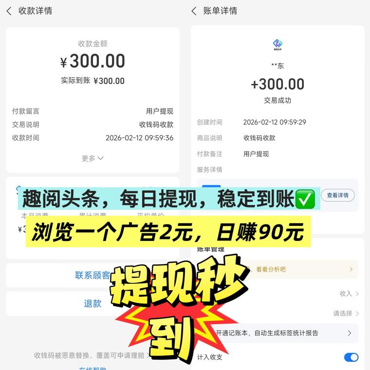 为保障用户收益及时兑现,趣阅头条配套便捷提现机制: