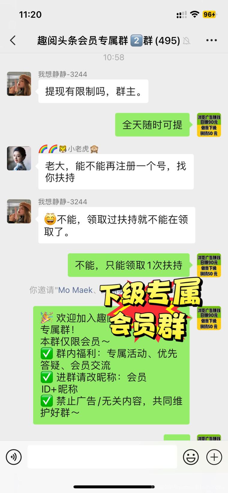 注册完成后,你可以添加我的联系方式,或者在App内私聊我。只要核实你是我直接推荐的伙伴,只要是我的下级,开通后截图付款记录+你的趣阅ID+收款码发给我,立刻返50元扶持金!名额有限,满额立刻停!