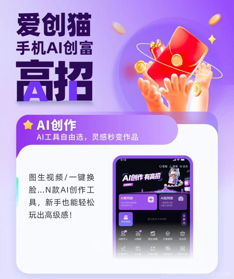 爱创猫视频种草代发平台:满1元支付宝提现+一键代发6-10元基础奖励+播放点赞额外收益封顶9000元