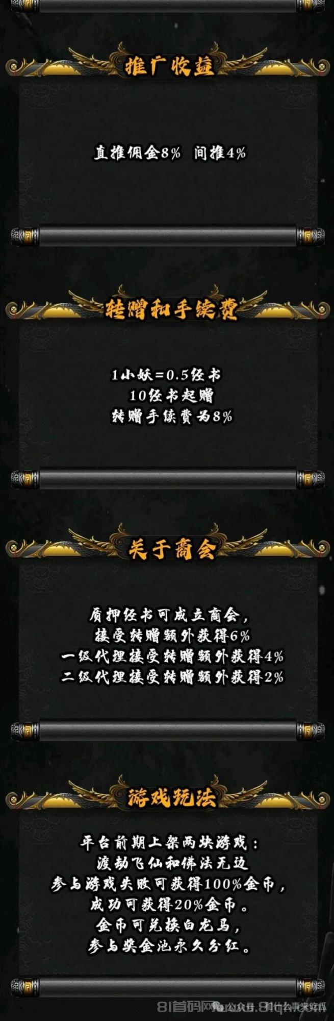 正文 刚出西游降魔,0撸经书快速变米! dingde113 V评论者 /今天 /0 评论 /514 阅读 0304 文章最后更新时间2026年03月04日,若文章内容或图片失效,请留言反馈! 刚出西游降魔,0撸经书快速变米!qq3502167351 零撸:注册就送一个永久金蝉子(每天产一个冻结经书)冻结经书得玩游戏然后去获得可以流通的经书2 卡:限量发售:分为沙僧卡(20经书每天产1个小妖) 八戒卡(80经书每天产4个小妖) 三藏卡(200经书每天产10个小妖) 悟空卡(400经书每天产20个小妖)3,1小妖=0.5经书!经书的定价是1收1.05出, 8%的手续费推广:直推8%,间推4%具体参照图片攻略! 版权声明:本文内容由互联网用户自发贡献,该文观点仅代表作者本人。合作之前建议签订合同,本站仅提供信息存储空间服务,不拥有所有权,不承担相关法律责任。请勿盲目下载注册。若您不同意该提示,请关闭网页且不要在本站拓展任何合作,否则造成的任何损失由您个人承担。如发现本站有涉嫌抄袭侵权/违法违规的内容, 请发送邮件至:1442121520@qq.com