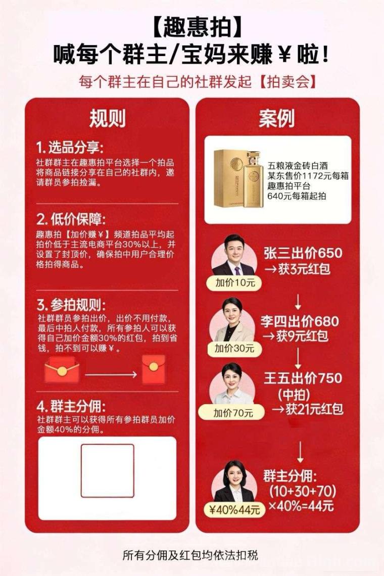 正文 首码趣惠拍,招募首批团队长,加价就赚30%红包,拍不到也赚钱! 蓝天城 V评论者 /今天 /0 评论 /517 阅读 0310 文章最后更新时间2026年03月10日,若文章内容或图片失效,请留言反馈! 趣惠拍~3月初火爆震撼登场,千年难遇的正规竞价电商平台,团长O费用参与,股东技术团队来自前阿里拍卖,唞音,1688,好省,云集 等高管,感召首期伙伴一起共享財富盛宴!杭州总部期待您的光临🤝 团长速看!2026卷王就是趣惠拍!✅产品成本价起拍,拍客抢着参拍✅拍客加价就拿30%红包,拍不到也赚✅团长躺赚分佣,一次锁客终身分佣🚫零成本零囤货,平台全包供应链售后,分享就赚!团队长注册后台再用自己邀请码进入用户端商场既可普通用户不用注册后台直接扫用户端邀请码进入商场就行QQ群1053818621 版权声明:本文内容由互联网用户自发贡献,该文观点仅代表作者本人。合作之前建议签订合同,本站仅提供信息存储空间服务,不拥有所有权,不承担相关法律责任。请勿盲目下载注册。若您不同意该提示,请关闭网页且不要在本站拓展任何合作,否则造成的任何损失由您个人承担。如发现本站有涉嫌抄袭侵权/违法违规的内容, 请发送邮件至:1442121520@qq.com