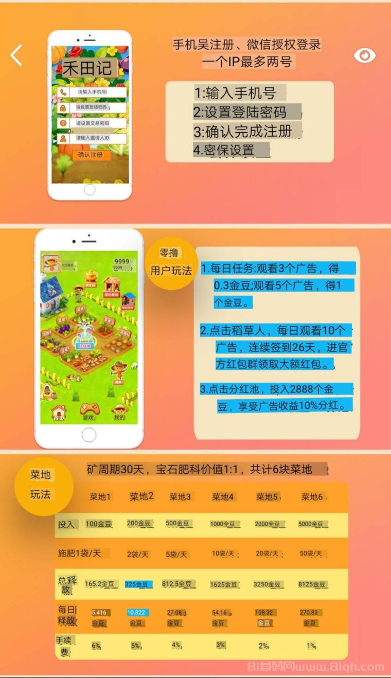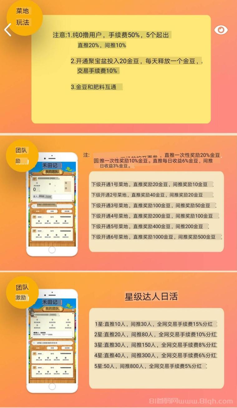 ④推广收益:菜地 直20%间10%(一次性),直6间3(周期奖励),其他参考资料变可
