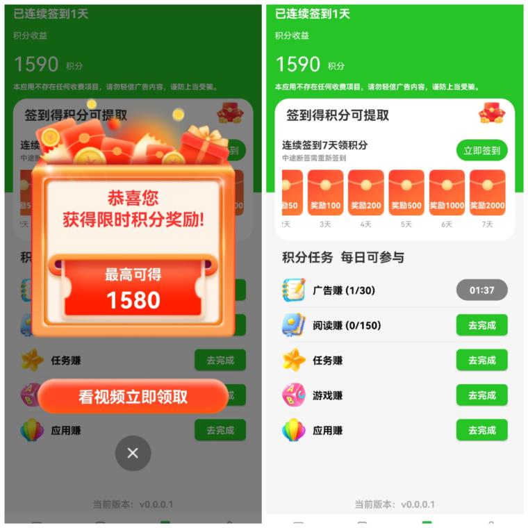 首码零撸不养机不看权重单机5元:全新上线看广告每日30条每条0.158元,满1元提现