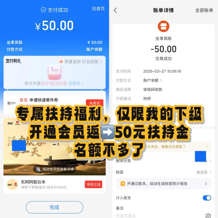 注册完成后,你可以添加我的联系方式,或者在App内私聊我。只要核实你是我直接推荐的伙伴,只要是我的下级,开通后截图付款记录+你的趣阅ID+收款码发给我,立刻返50元扶持金!名额有限,满额立刻停!