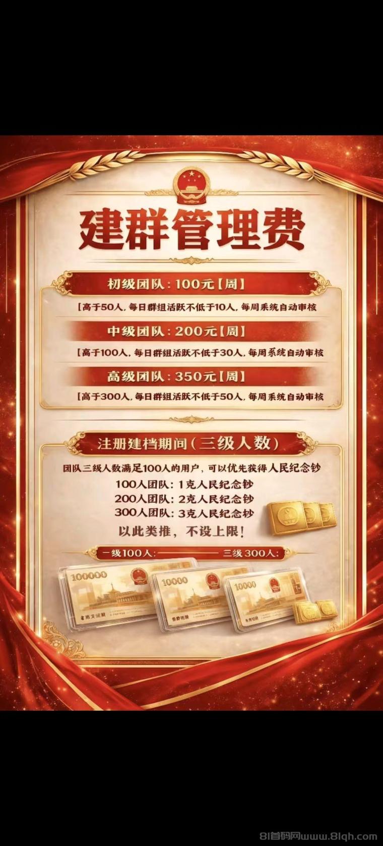 团队长够50人领取周薪100 100人周薪200 300人周薪