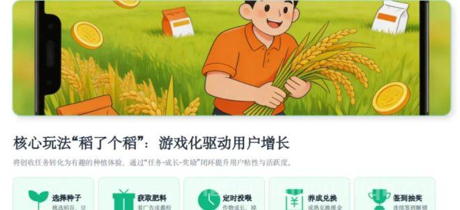 选种子→赚肥料→养作物→兑奖励任务娱乐化,用户粘性极强,团队留存率翻倍!