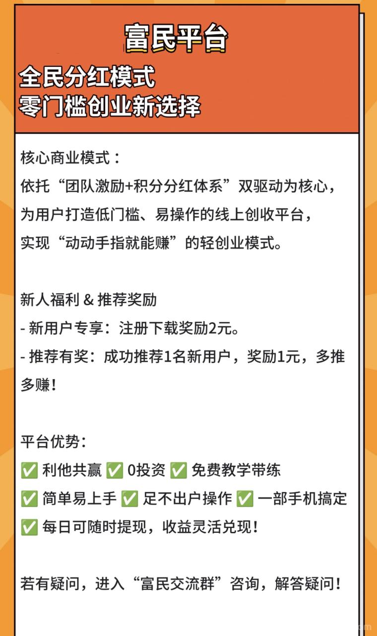 正文 富民首码:零撸广告,多APP矩阵,不养机保底收益更高 zhuzi123 V评论者 /今天 /0 评论 /518 阅读 0425 文章最后更新时间2026年04月25日,若文章内容或图片失效,请留言反馈! 边刷视频边赚钱!一个盒子聚合泡趣横生、险影无敌等4款热门应用,刷短视、追短剧都能赚,收益统一提现。✅扫码下载:额外解锁隐藏奖励,收益比普通渠道高20%✅新人补贴:注册4天内提现,提100到账111,提1000到账1100✅多赚玩法:拉新推荐1人得1万金币,新人完成任务再得2万;连续签到7天最高得3888金币;看10-20条广告最高领2666金币,刷短视频短剧都赚;每月25日分红,分红池总额超573万。✅1元起提无压力,有推广资源可做矩阵变现,收益更稳!扫码立即解锁,边玩边赚👉 版权声明:本文内容由互联网用户自发贡献,该文观点仅代表作者本人。合作之前建议签订合同,本站仅提供信息存储空间服务,不拥有所有权,不承担相关法律责任。请勿盲目下载注册。若您不同意该提示,请关闭网页且不要在本站拓展任何合作,否则造成的任何损失由您个人承担。如发现本站有涉嫌抄袭侵权/违法违规的内容, 请发送邮件至:1442121520@qq.com
