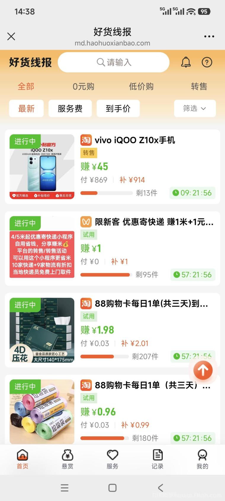 全网好货线报集免费撸货赚米,悬赏赚米一体,用斤高至大几十一单!
